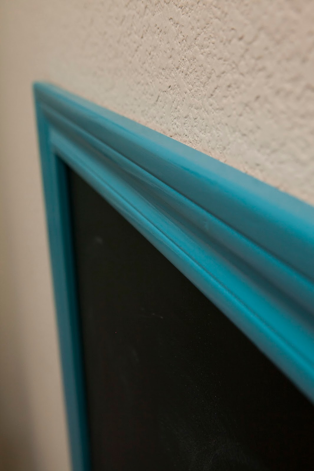 We purchased all of our supplies at Lowe's, but any home improvement store should have all the necessary supplies. Although some products were purchased for this project, there were plenty leftovers for future products like the chalkboard paint and masonite board. We went with a masonite board since it is light weight and has a smooth surface. The board only comes in a 4'x8' piece so we went ahead and had Lowe's cut it down to size for us and then put the scrap pieces in the garage. Our chalkboard is 3'x4'9". Originally we were going for a 3'x5' chalkboard, but the trim we wanted came in 7' and 10' sections so my hubbie had them cut it down slightly smaller.